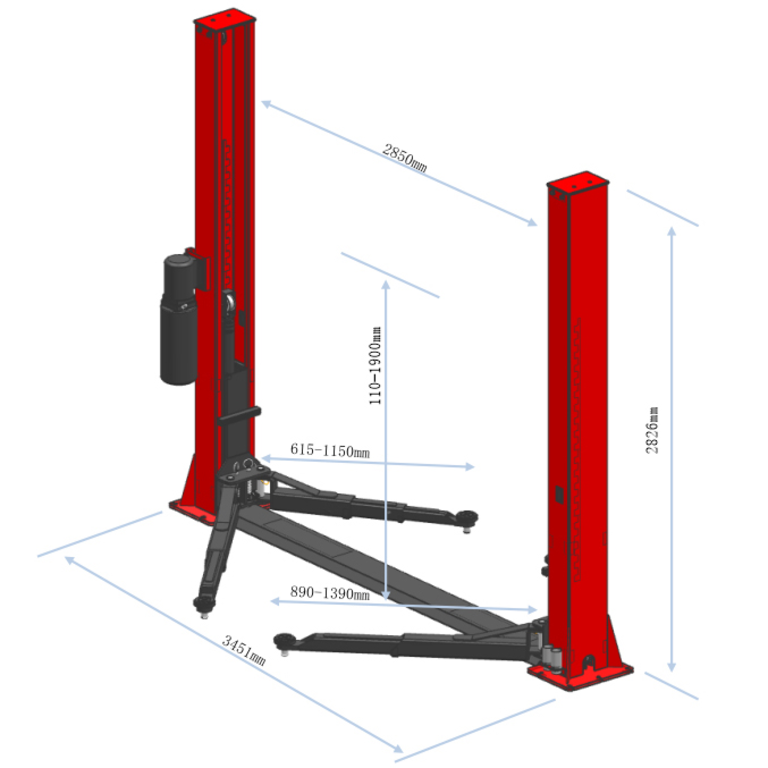 Электрогидравлический двухстоечный подъемник с нижней связью для легковых автомобилей и внедорожников общей массой до 4,2т. Классическая симметричная конструкция с двухсоставными подхватами низкого профиля позволяет обслуживать машины с низким клиренсом. Подходит для СТО с невысокими потолками
