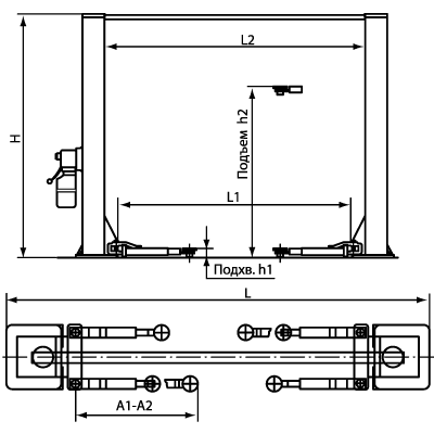Подъёмник двухстоечный с верхней синхронизацией 4т, 380V (125-1980мм)