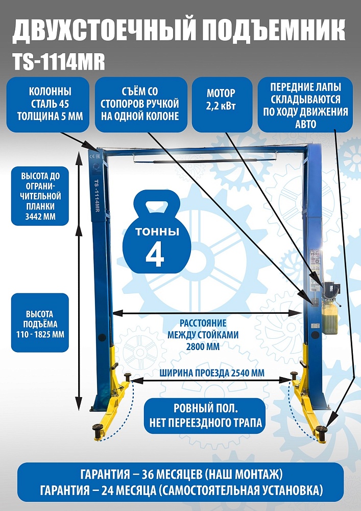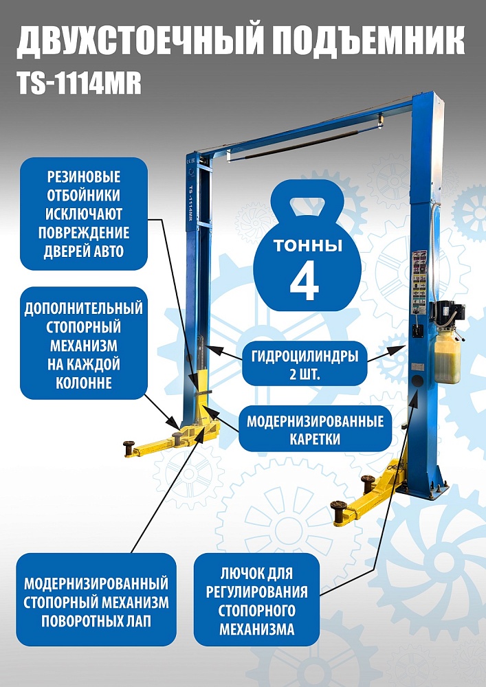 TS-1114MR подъемник 4 т, 2-х ст. электрогидравлический (2025) (220 V ТВ) купить в СПб цена ✅ - Все для СТО