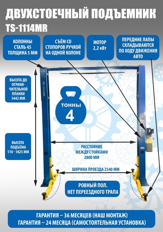 TS-1114MR подъемник 4 т, 2-х ст. электрогидравлический (2025) (380 V ТВ) купить в СПб цена ✅ - Все для СТО