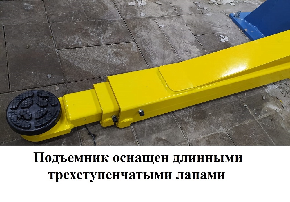 • Специально разработан для подъема автомобилей с длинной базой «Спринтер», «Газель» и тяжелых типа «Скорая помощь» и бронированных. После поднятия длинных авто – ОБЯЗАТЕЛЬНО установите страховочные стойки!!!