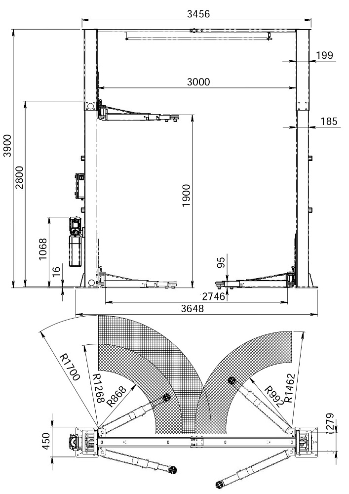 ·         Оснащен верхним ограничительным выключателем, что предотвратит деформацию крыши поднимаемого автомобиля.