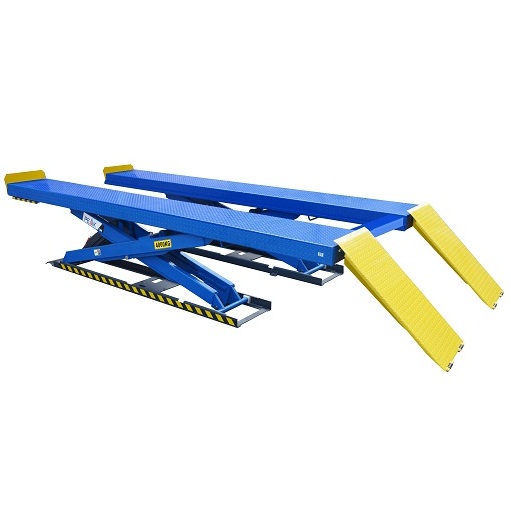 WDK-504 заглубляемый ножничный подъемник монтируется на приямок и в сложенном состоянии не выступает над уровнем пола. Удобен для установки в узких помещениях и зонах приемки автомобилей, где подъемник используется только при необходимости. Электрогидравлический насос установлен в станции управления на безопасном расстоянии от рабочей зоны. Клапан синхронизации и пневматическая разблокировка стопоров обеспечивают безопасную эксплуатацию подъемника.