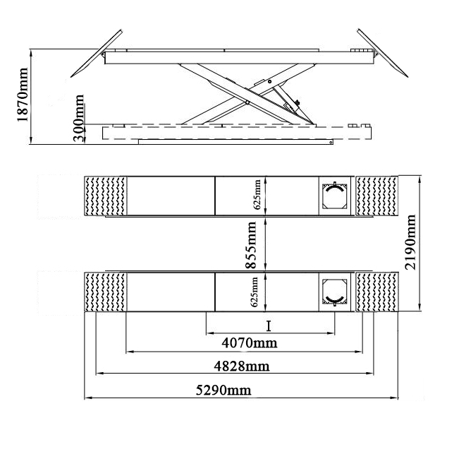 Два синхронизированных цилиндра обеспечивают плавный подъем обеих платформ.