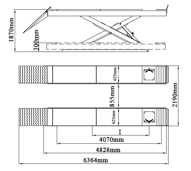 Среднеуровневый электрогидравлический передвижной подъемник, грузоподъемность 3 т., высота подъема 910 мм.