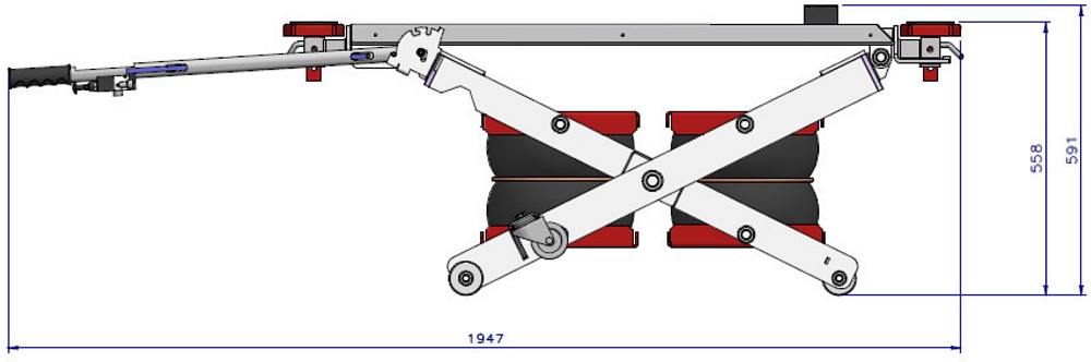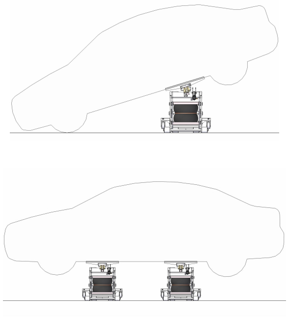 Подкатной пневмоподъемник ножничного типа, за счет своих габаритов и мобильности, позволяет поднимать автомобили в небольших помещениях с низкими потолками, и даже на улице. За счет поднятия передней или задней части автомобиля появляется доступ к днищу. Данным подъемником активно пользуются кузовные цеха и детейлинг-центры.