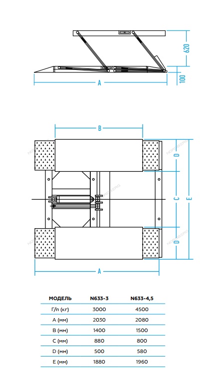Подъемник ножничный, г/п 3 т (380В) NORDBERG N633-3_380 купить в СПб цена ✅ - Все для СТО