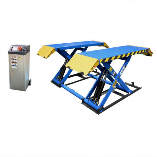 Мобильный ножничный подъемник с электрогидравлическим приводом для шиномонтажных и кузовных работ.