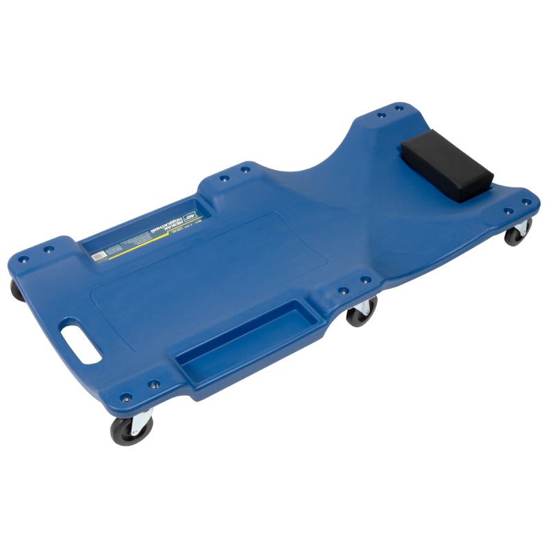 Лежак ремонтный, подкатной, синий OPTIMUS HD OPT-40130B предназначен для проведения работ под автомобилем. Цельнолитой корпус выполнен из ударопрочного пластика. Лежак имеет мягкий подголовник и анатомические углубления для обеспечения комфортной работы. На корпусе предусмотрены лотки под инструмент и крепеж.