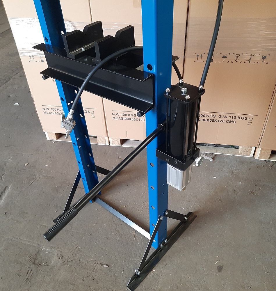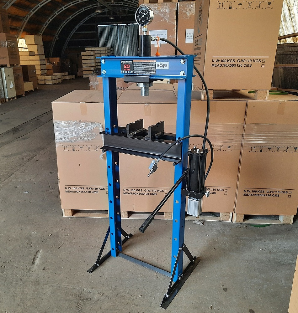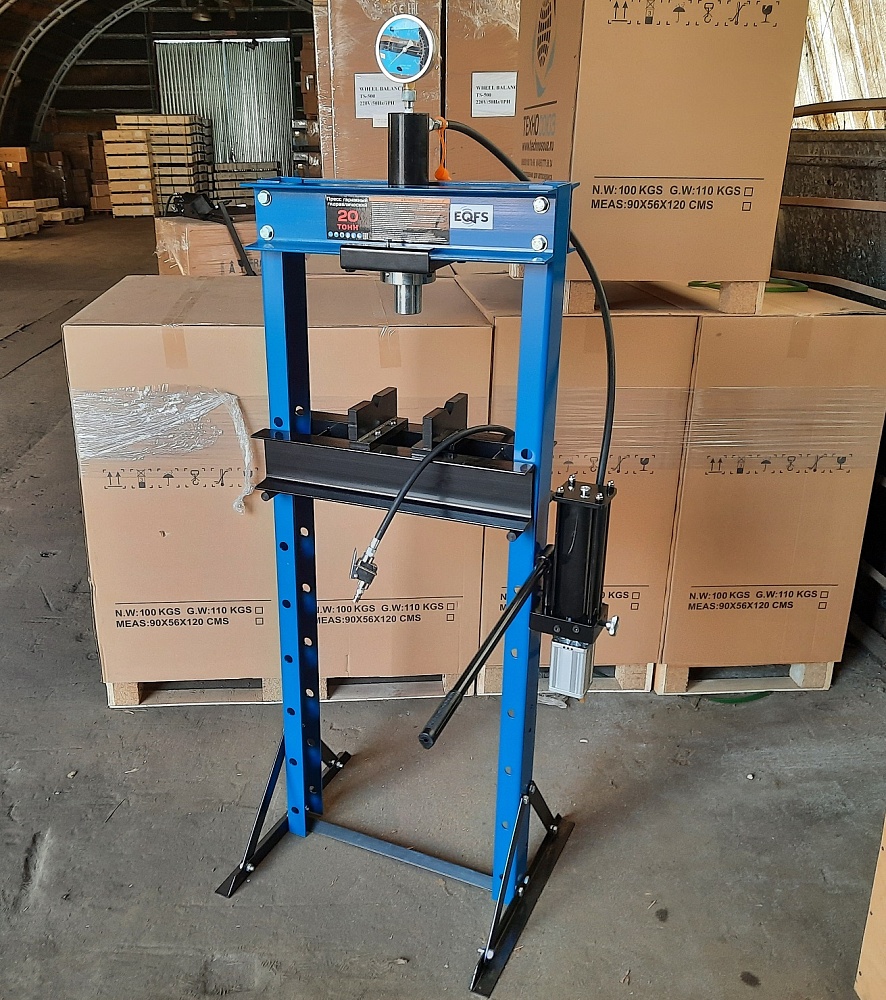 Пресс гидравлический оснащен насосом с ручными и пневматическим приводом с максимальным усилием 20т.