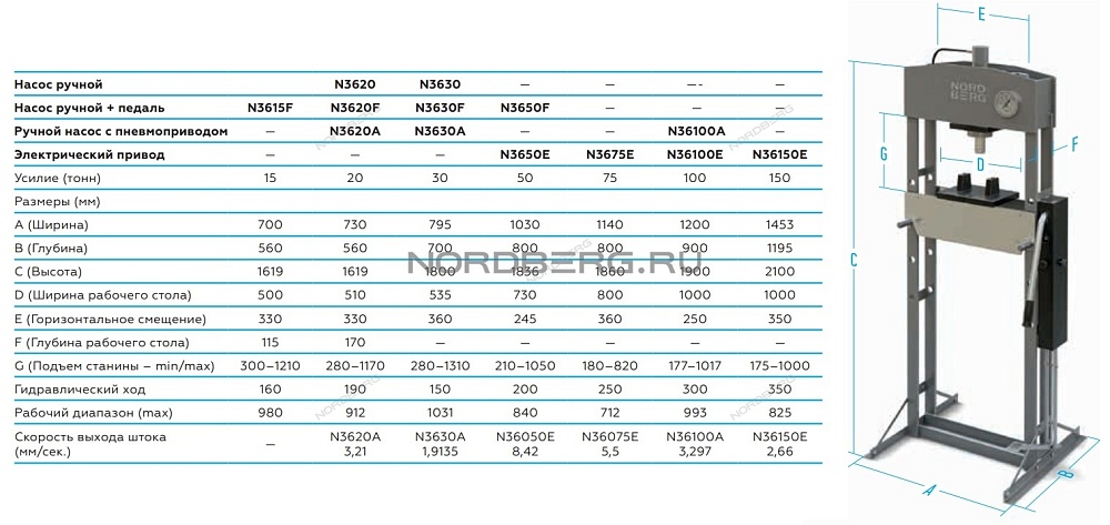 Пресс напольный электрогидравлический NORDBERG n3650е купить в СПб цена ✅ - Все для СТО