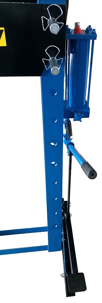 Данный пресс рассчитан для выполнения как простых, так и очень сложных технологических операций: он может поддерживать заданное оператором давление до 24 часов, подходит практически под любые операции с запчастями – выпрессовка, штамповка, калибровка, прошивка, выправка. Цилиндр и стол в рамке можно смещать, что дополнительно добавляет свободы действий и удобства оператору. Сварная усиленная рама отвечает всем стандартам отрасли и обладает хорошим запасом прочности.