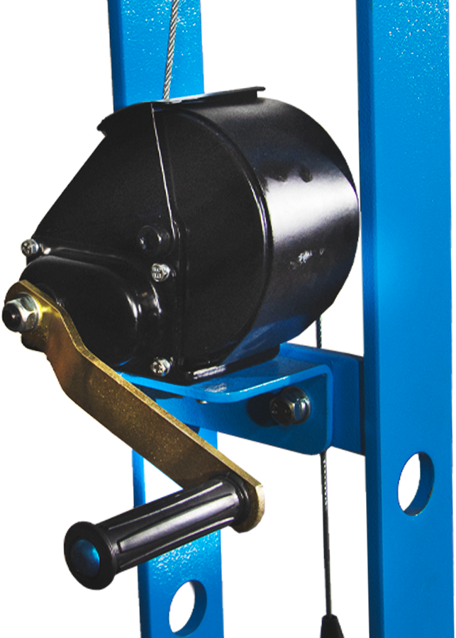Полностью сварная рама, усилие 50 тонн, управление ручное/ножное, гидроцилиндр с пуансоном перемещается по всей ширине каретки, клапан защиты от перегрузки, манометр, ручная лебедка. Ход поршня 220 мм. Рабочее окно 730х1068 мм. Рекомендуется для выпрессовки подшипников, деталей машин, втулок и т.п. в автосервисе, Гараже и СТО. Цвет синий.