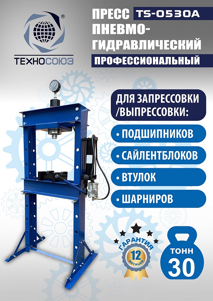 Пневмогидравлический пресс 30 тонн TS-0530A: мощь и универсальность для СТО