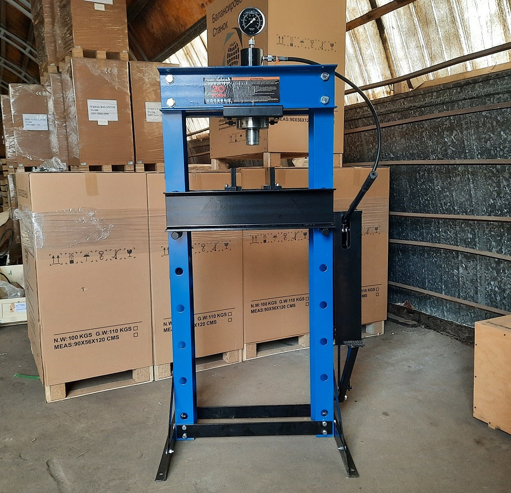 Пресс гидравлический ручной укомплектован насосом с одной плунжерной парой и максимальным усилием 30т.