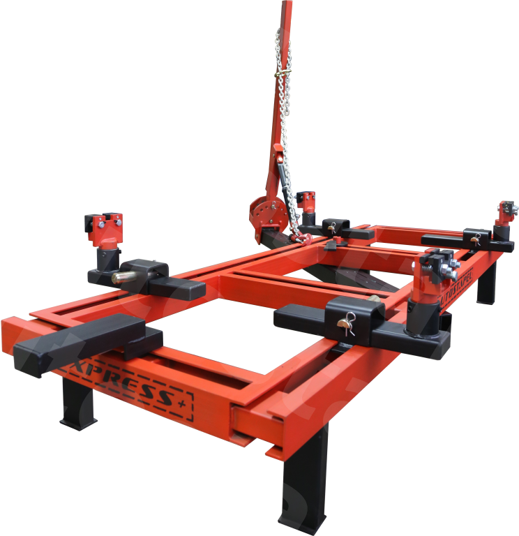 Рама стапеля EXPRESS+ рассчитана под установку автомобилей с длинной базой и способна без труда выдерживать большие нагрузки.   Конструкция рамы отличается от аналогов и разработана с учетом опыта и пожеланий российских мастеров кузовного дела.