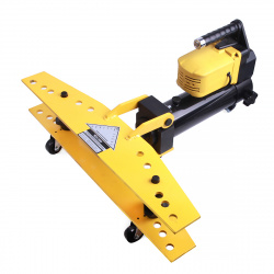 Ручной электрогидравлический трубогиб с максимальным усилием 13т., предназначен для гибки водо-газопроводных труб по ГОСТ в холодном состоянии без заполнения, а также различных видов оцинкованных и эмалированных труб. Встроенный насос делает трубогиб энергонезависимым и позволяет проводить гибку в любом месте. Трубогиб имеет размыкаемую раму, которая упрощает установку сгибаемой трубы. Трубогиб снабжен сменными матрицами для труб от 1/2" до 2", обеспечивающих угол изгиба от 0° до 90°. Для работы используется гидравлическое масло. Трубогиб имеет клапан снятия давления для возврата штока в исходное положение. Поворотные колеса позволяют быстро перемещать трубогиб с места на место.