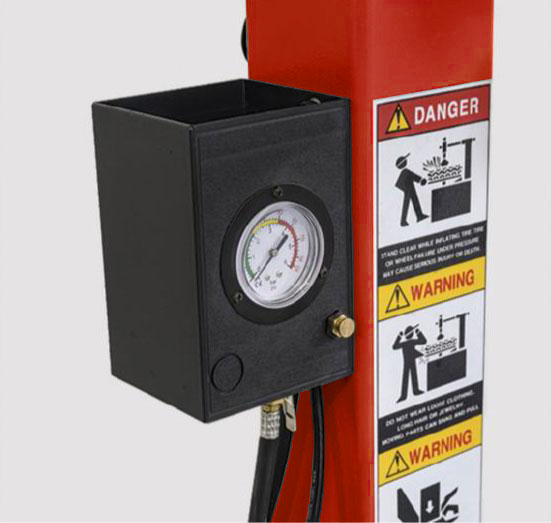 Манометр контроля давления воздуха смонтирован на монтажной стойке. Накачка - нажатием ногой на педаль.