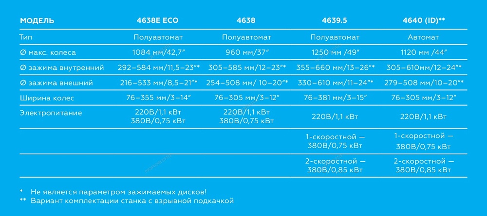 для монтажа колес легковых автомобилей, легких грузовиков, не больших автобусов и коммерческой техники. Внешний зажим 12-38”. Внутренний зажим 14-30”. 220/380В. Рекомендуется для постов со средней и высокой проходимостью. Станок укомплектован ручным переключателем скорости рабочего стола