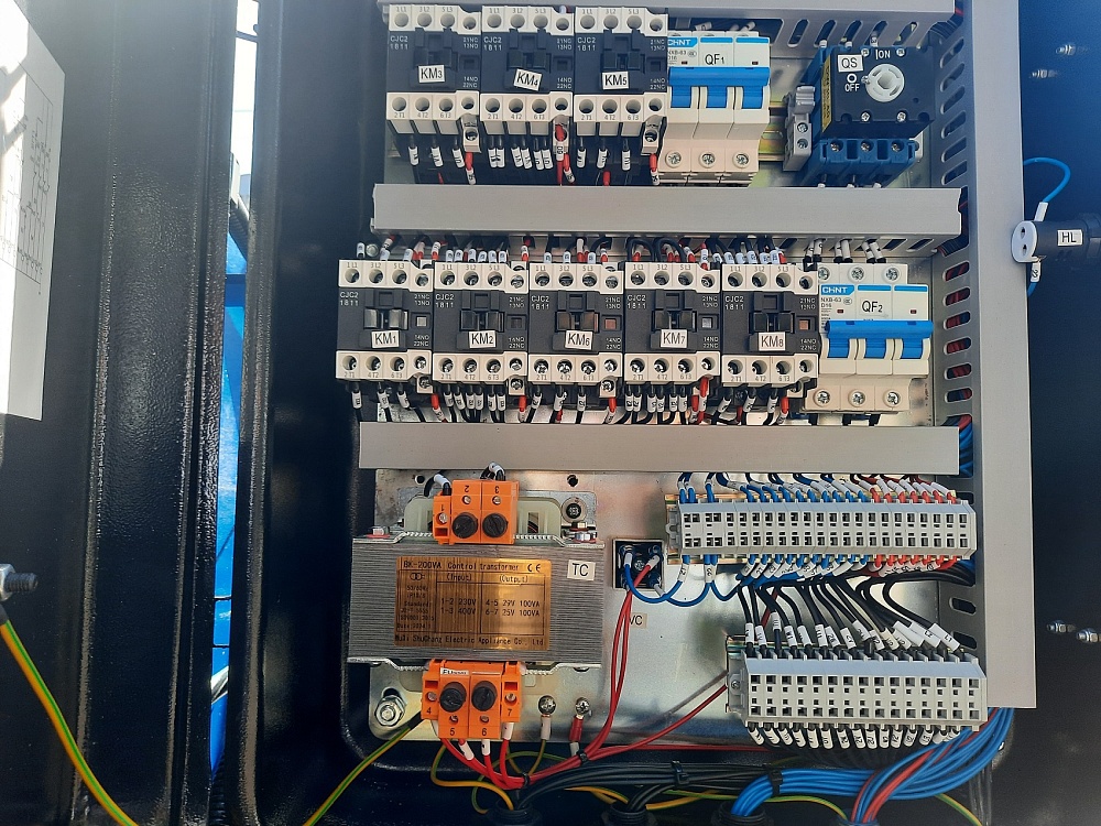 Принципиальная электросхема оборудования нанесена на внутренней части крышки пульта управления. Электрический кабель с вилкой для подключения к розетке 380В