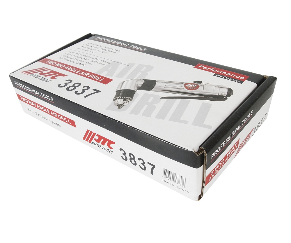 Пневматическая угловая дрель JTC 3837 популярна у работников автосервиса за качество сверления и небольшие размеры.