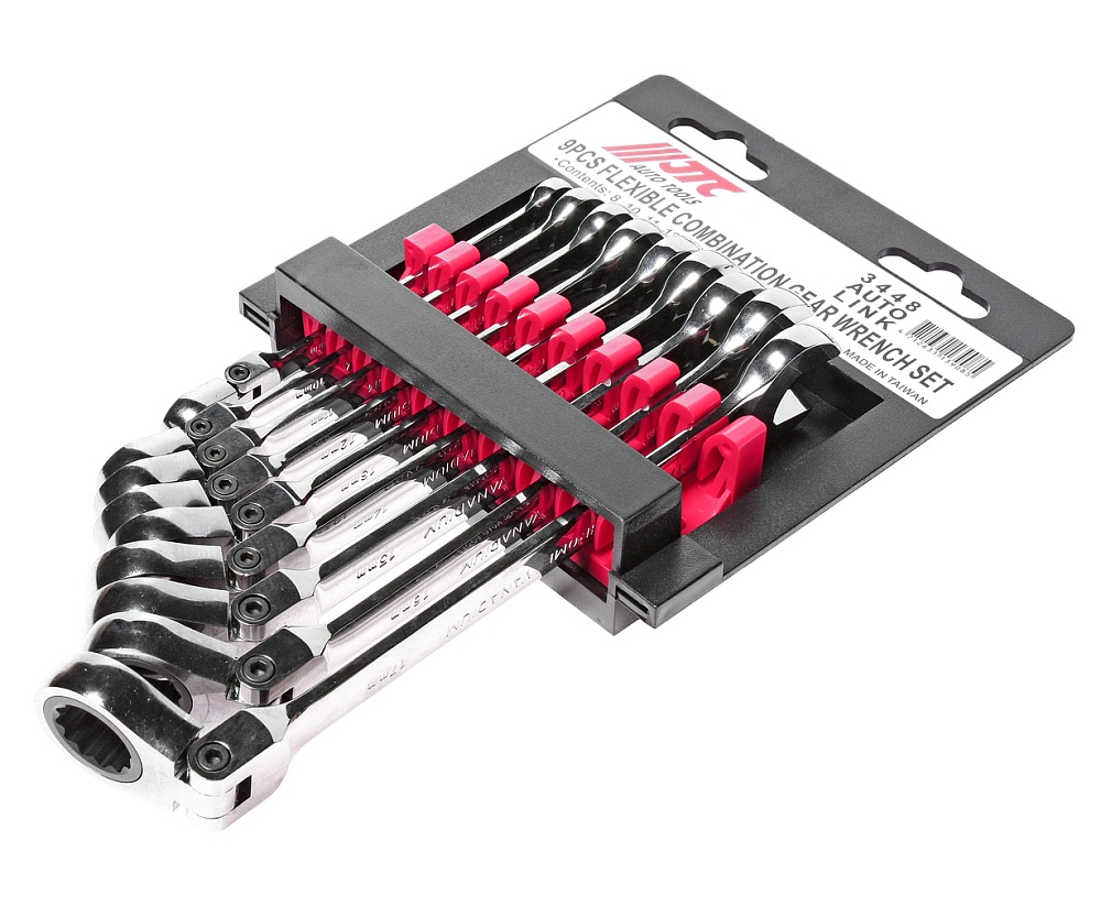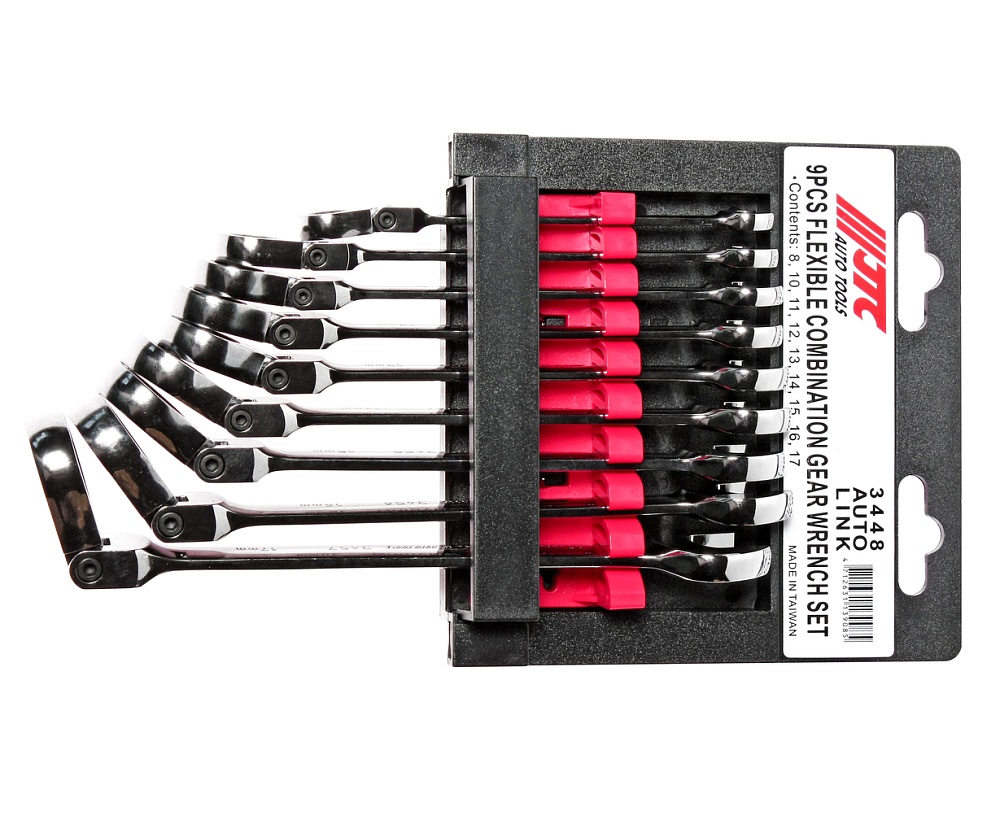 JTC-3448 Набор ключей комбинированных трещоточных с подвижной головкой 8-17мм (на холдере) 9 предметов JTC /1 купить в СПб цена ✅ - Все для СТО