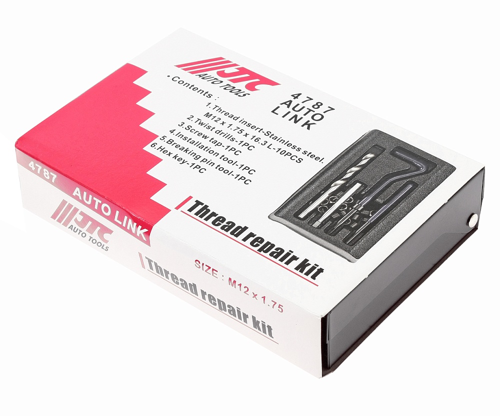 JTC-4787 Набор для восстановления резьбы (вставки M12x1.75, длина 16.3мм, 10шт) 14 предметов JTC /1