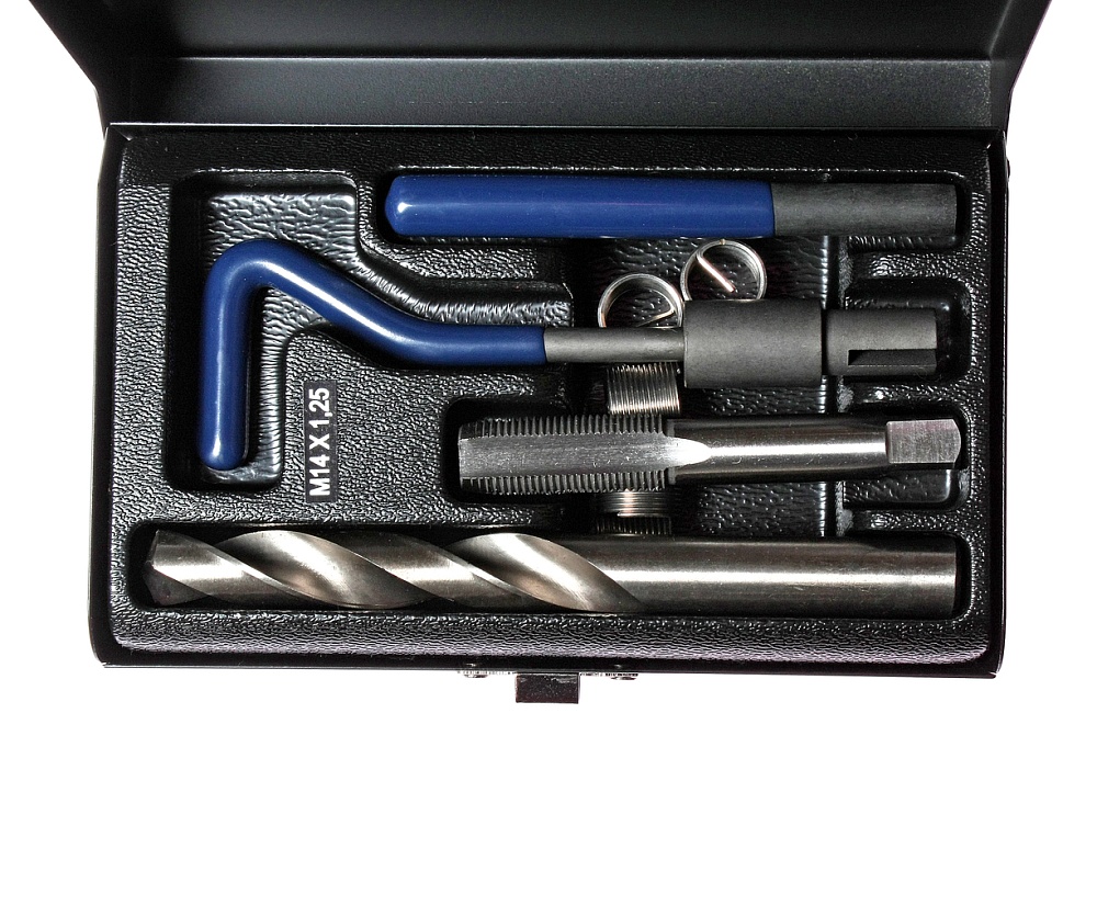 Набор для восстановления резьбы (вставки M14x1.25, длина 12.4мм, 5шт) 9 предметов JTC /1