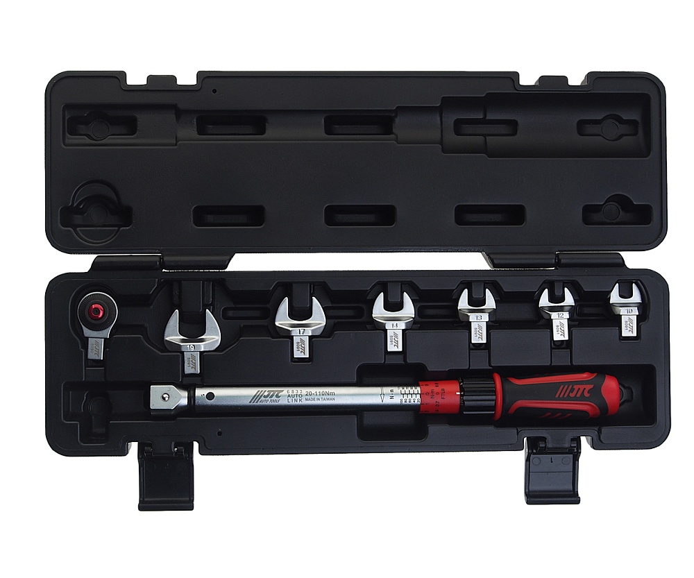 JTC-6833K Ключ динамометрический 9х12 с набором рожковых насадок 8 пр. (10-19мм), диапазон 20-110 н/м JTC купить в СПб цена ✅ - Все для СТО