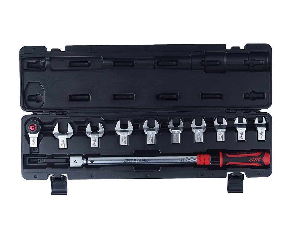 Ключ динамометрический 14х18 с набором рожковых насадок 11 пр. (13-30мм), диапазон 40-200 н/м JTC