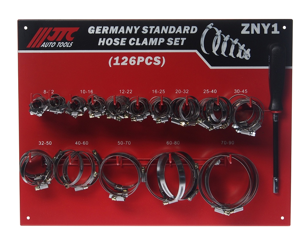 JTC-ZNY1 Набор хомутов червячных ZN12-ZN90 с гибким воротком 7мм (стенд) 126 предметов JTC /1 NEW купить в СПб цена ✅ - Все для СТО