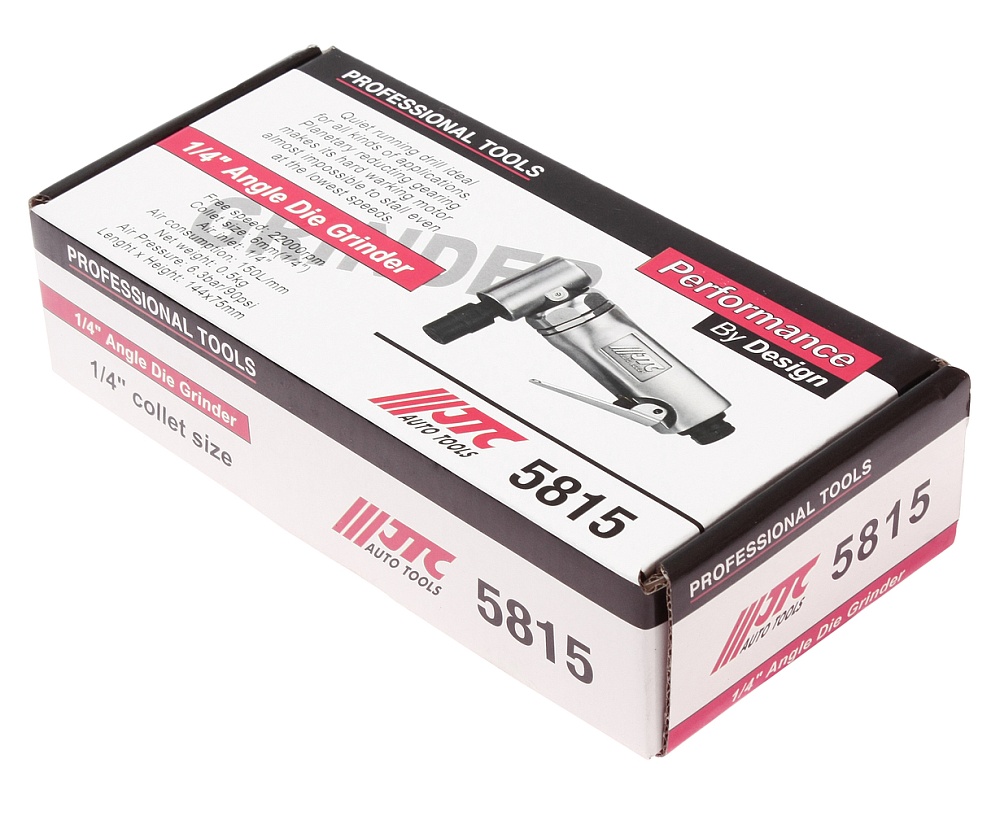 Пневматическая углошлифовальная машинка JTC 5815 имеет металлический корпус, что повышает её рабочий ресурс. Она обладает большой производительностью, благодаря высокому числу оборотов диска. Принцип работы на сжатом воздухе предусматривает низкую пожаро- и взрывоопасность рабочего процесса, а также позволяет увеличивать длительность работы без перегрева.