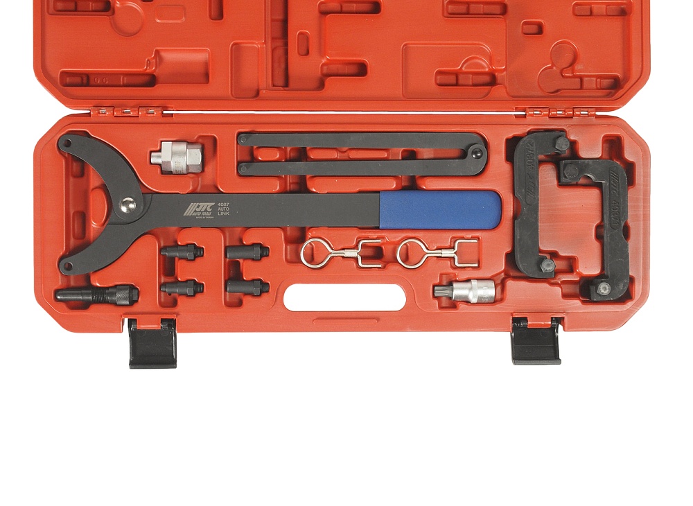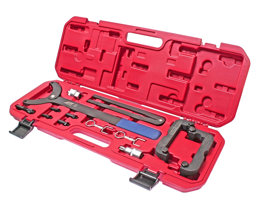Набор предназначен для регулировки и установки фаз ГРМ, замены цепи ГРМ и других аналогичных работ.