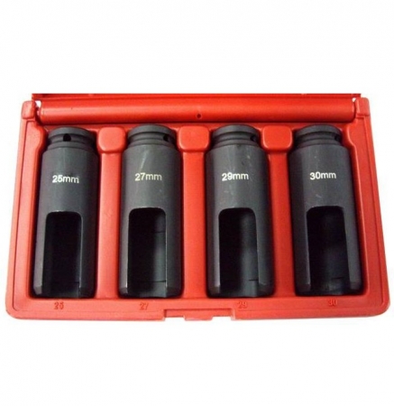 Набор головок для снятия дизельных форсунок Применяются для монтажа и демонтажа топливных форсунок дизельных двигателей. Головки изготовлены из хром ванадиевой стали и способны выдерживать высокие крутящие моменты. Комплектация Головка с прорезью 25 мм. 6 граней, длина 100 мм. привод 1/2" Головка с прорезью 27 мм. 6 граней, длина 100 мм. привод 1/2" Головка с прорезью 29 мм. 6 граней, длина 100 мм. привод 1/2" Головка с прорезью 30 мм. 6 граней, длина 100 мм. привод 1/2" Применение Совместим с топливными форсунками производства SIEMENS & BOSCH