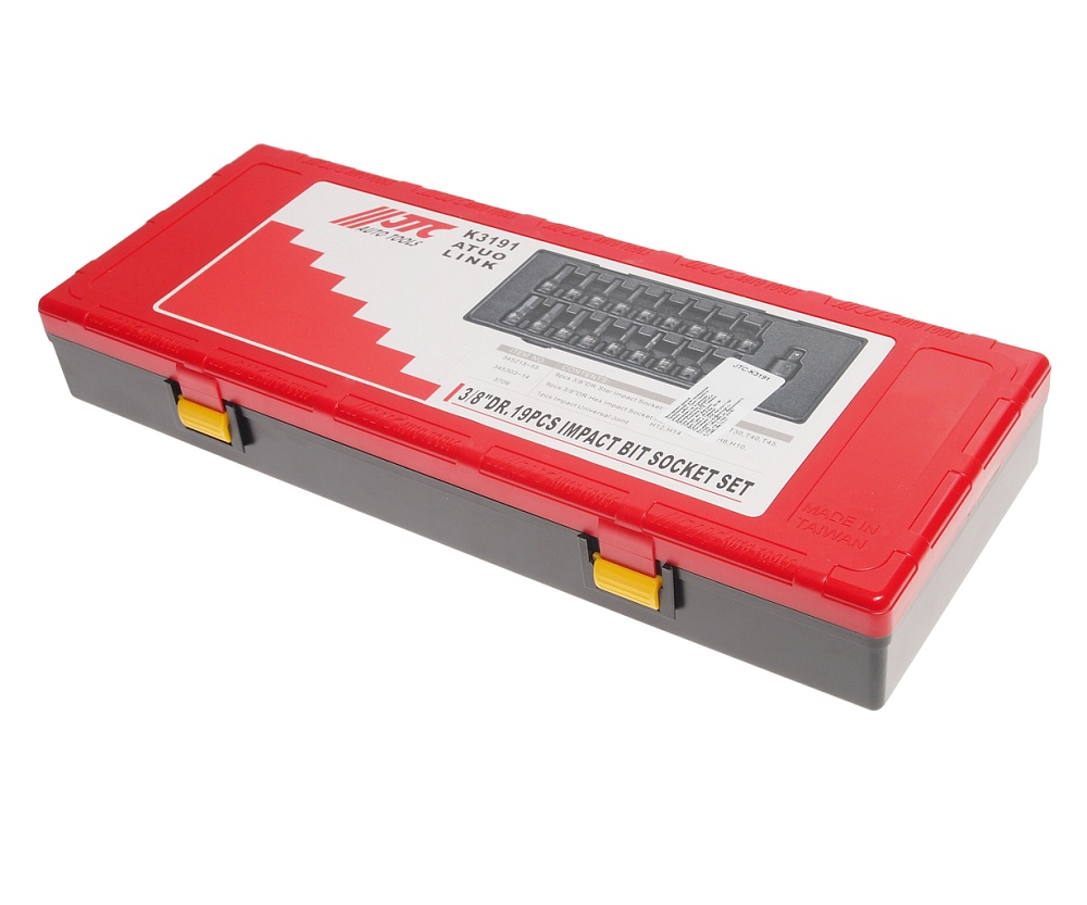 Набор головок торцевых 3/8" 6-ти гранных ударных в кейсе 19 предметов JTC