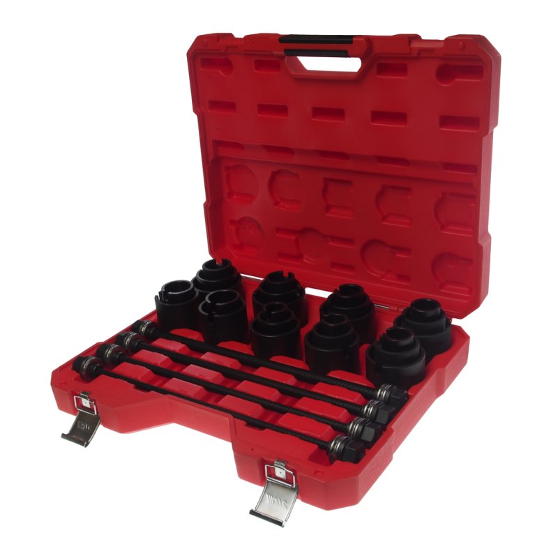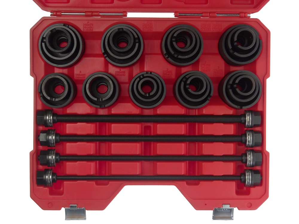 Универсальный набор используется для снятия и установки сайлентблоков и резиновых втулок.