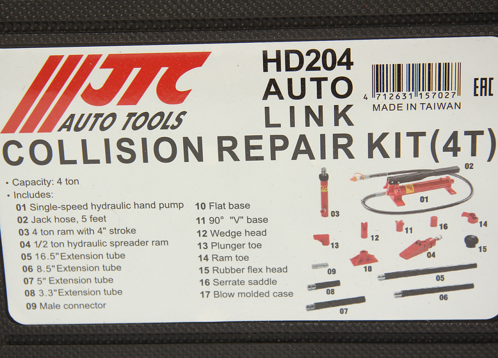 Набор инструментов для кузовных работ гидравлический, усилие 4т, 17 предметов в кейсе JTC купить в СПб цена ✅ - Все для СТО