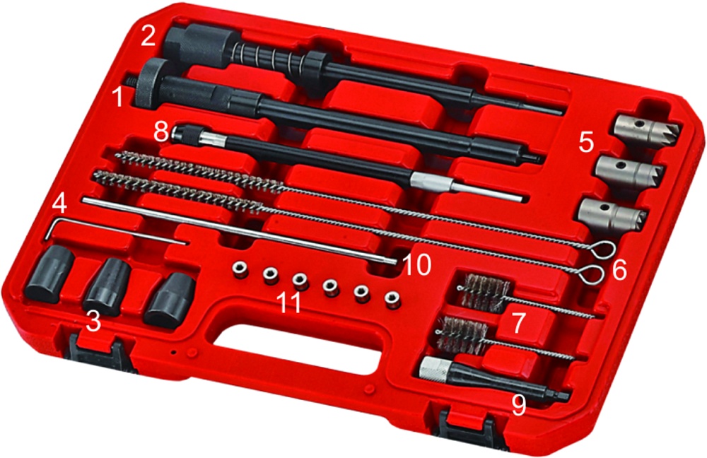 Оптимальный комплект для восстановления и очистки посадочных мест форсунок.