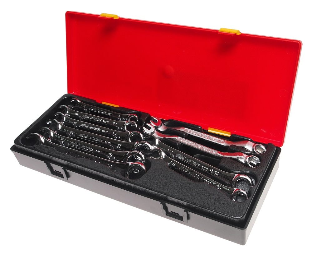 Артикулы JTC-1018-1826: ключ разрезной: 8х9, 10х12, 11х13, 14х17, 16х18, 17х19 мм., 3/8"х7/16", 1/2"х 9/16" — 8 шт.