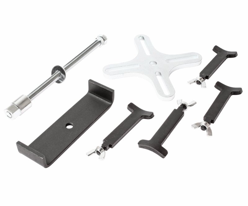 Регулируемые захваты (упоры) приспособления подходят для большинства легковых и грузовых автомобилей и применяются для замены муфты коробки передач.