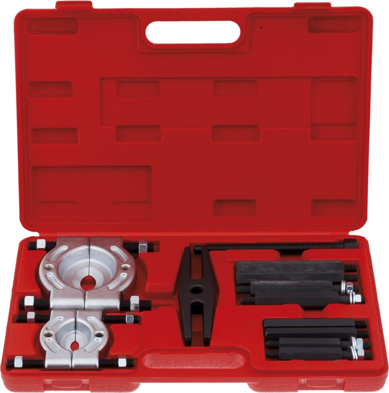 Применяется для демонтажа подшипников конического, шарикового и роликового типа. Особенности: Острые внутренние кромки сепаратора позволяют осуществить демонтаж даже плотно посаженных деталей. Наличие удлинителей позволяет использовать съёмник для демонтажа подшипников, напрессованных на ось большой длины. Широкий диапазон применения благодаря наличию двух сепараторов. Комплект набора: Сепаратор 30 мм – 50 мм (KA-1001) - 1 шт. Сепаратор 50 мм – 75 мм (KA-1002) - 1 шт. Опорные боковые оси 91 мм - 2 шт. Опорные боковые оси 113 мм - 2 шт. Удлинители боковых осей 62 мм - 2 шт. Удлинители боковых осей 83 мм - 2 шт. Центральный шток-толкатель 180 мм - 1 шт. Инструкция - 1 шт. Кейс для хранения - 1 шт.