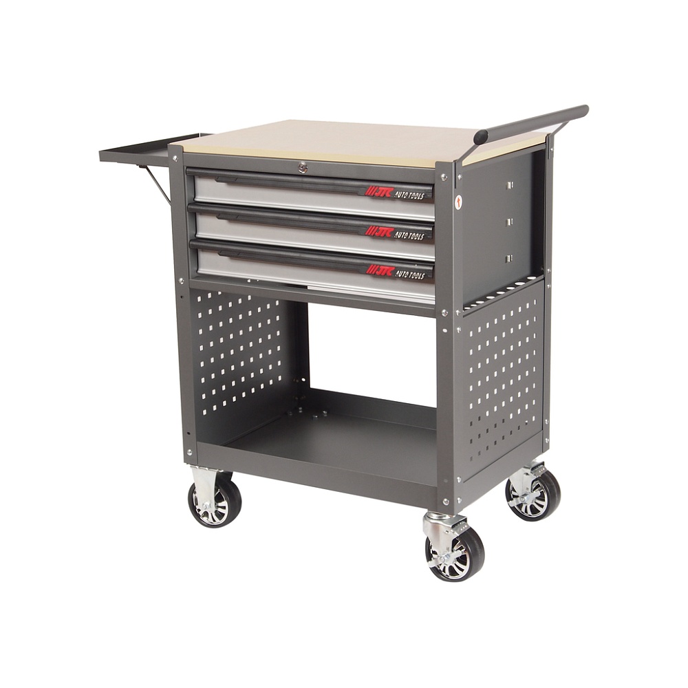 Инструментальная тележка (3 секции, серая, на колесах, с открытым отсеком) JTC 5516 имеет достаточно пространства для хранения инструмента и деталей: