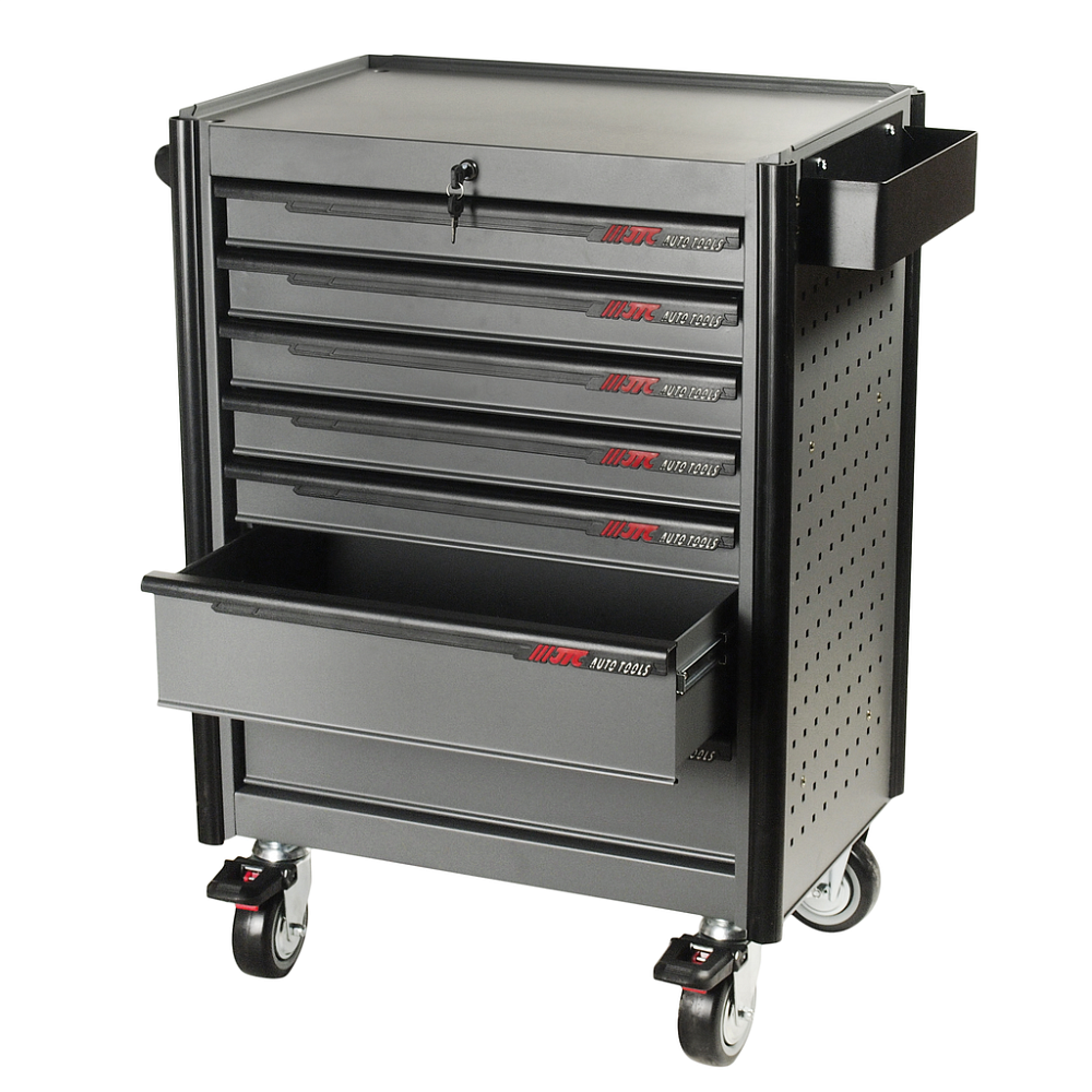 Инструментальная тележка 4 секции в комплекте с набором инструментов 279шт JTC-5021+279 - оптимальный вариант для организации индивидуального рабочего места в гараже, мастерской, автосервисе, станции ТО или на производственном участке. Изделие имеет большое количество вместительных ящиков и полок, многие из которых комплектуются широким ассортиментном ручных инструментов и приспособлений.