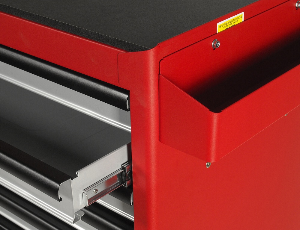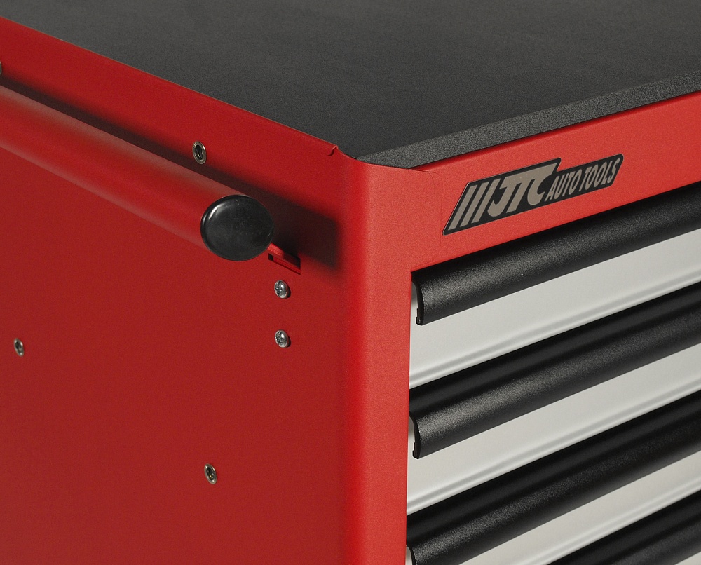 Инструментальная тележка 8 секций JTC 5641 дает возможность упорядоченно хранить рабочие приспособления и оснастку. Фиксирующие защелки в каждом ящике исключают случайное открывание. Два прямых и два поворотных колеса имеют термопластичное каучуковое покрытие, которое отличается антивибрационными свойствами. Роликовые направляющие позволяют полностью выдвинуть и легко вынуть ящик из тележки в случае необходимости. Усиленные ручки по бокам обеспечивают маневренность конструкции. Порошковое покрытие надежно защищает поверхность от царапин и гарантирует устойчивость к растворителям.
