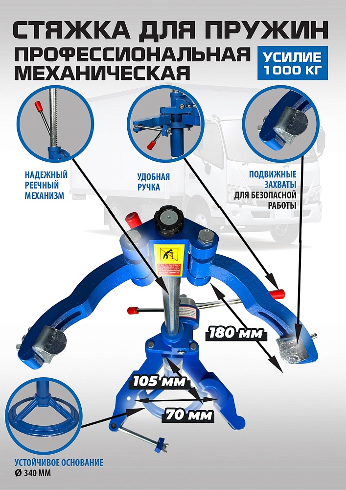 Описание нацелено на поисковые запросы: стяжка пружин, напольная стяжка пружин, механическая стяжка, стяжка для амортизаторов, 1000 кг, для легковых и микроавтобусов, без переспама и с высокой релевантностью для Авито.