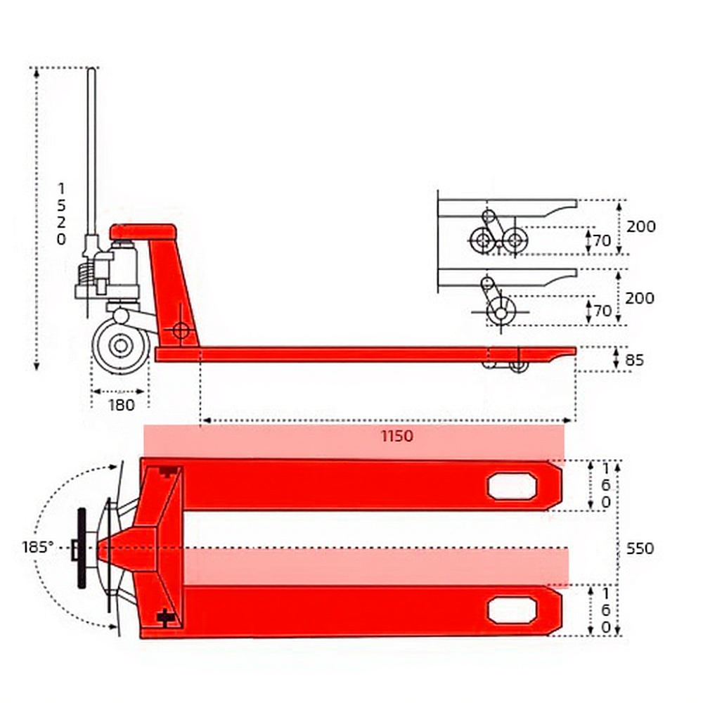 | Высота подъема вил | 200 мм |