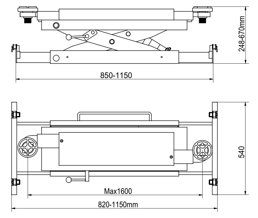 KRWJ2M KraftWell Траверса ножничная гидравлическая без привода г/п 2000 кг.