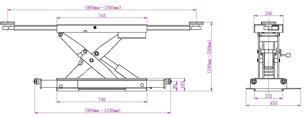 KRWJ2M KraftWell Траверса ножничная гидравлическая без привода г/п 2000 кг.