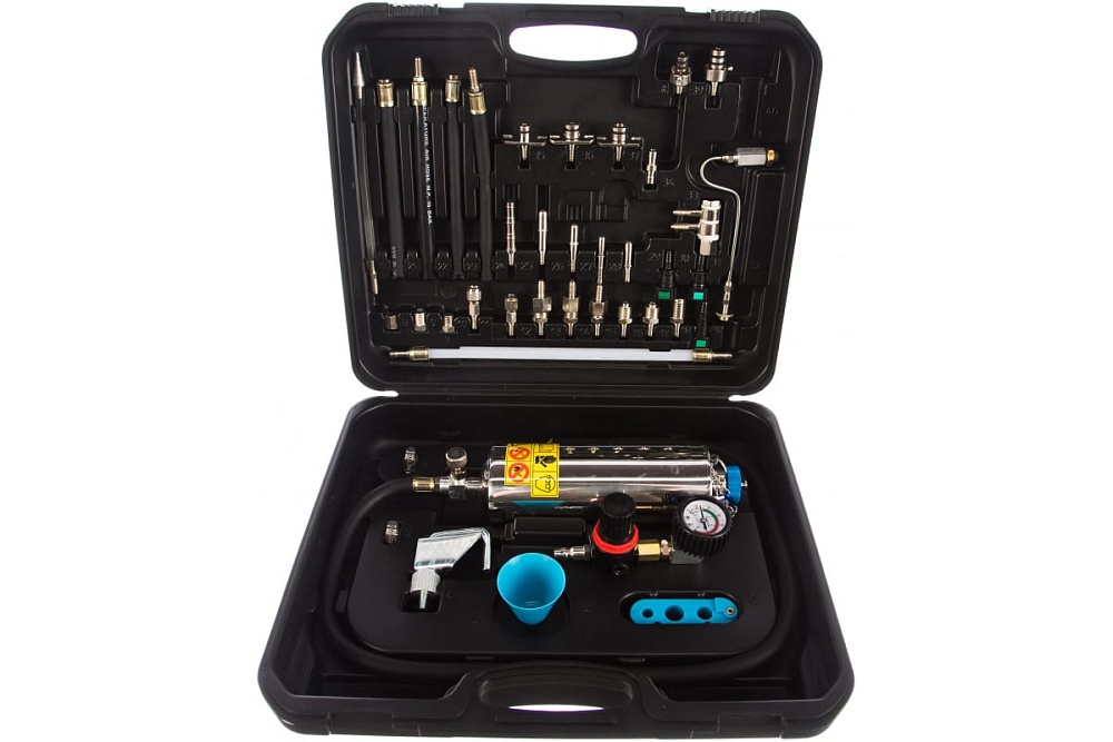 В базовую комплектацию включен специальный адаптер для промывки дроссельного узла и впускного тракта. Использование данного адаптера позволит вам, не производя демонтаж этих узлов, проводить как профилактическую, так и активную чистку данных элементов. Для использования данного способа очистки требуется специальный очиститель.