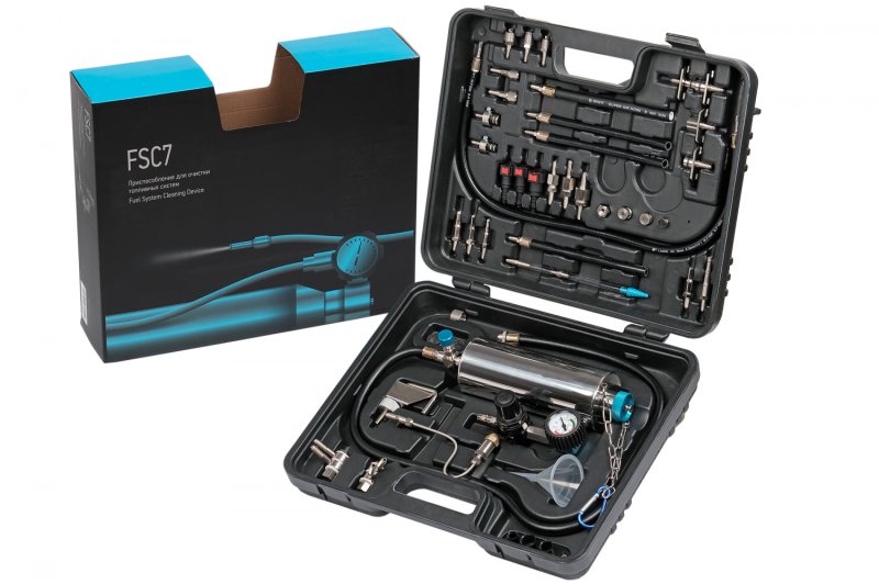 Приспособление для очистки топливных систем в кейсе NORDBERG FSC7 используется для химической очистки топливных систем автомобиля без снятия форсунок, подключаясь к топливной рампе системы впрыска двигателя. Рекомендуется к использованию как в автосервисах, так и для личных нужд автолюбителей